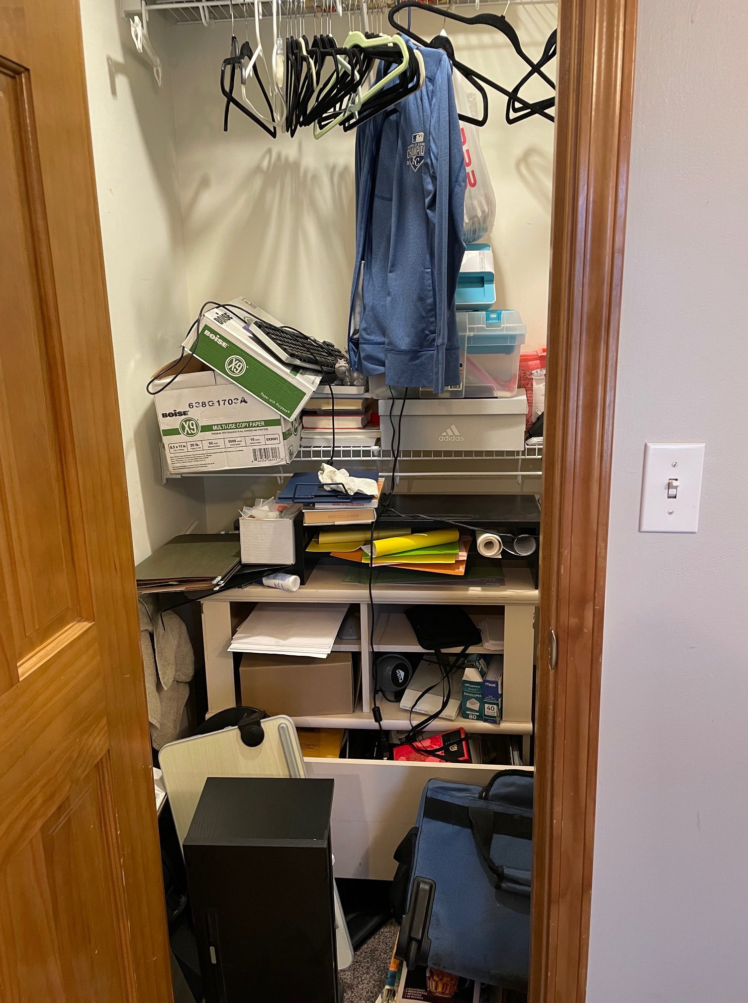The office closet was the hardest. It had slowly become the catch all for “stuff” and cleaning it out took the better part of a day. But as you can see in the before and after pictures, it is practically empty now!